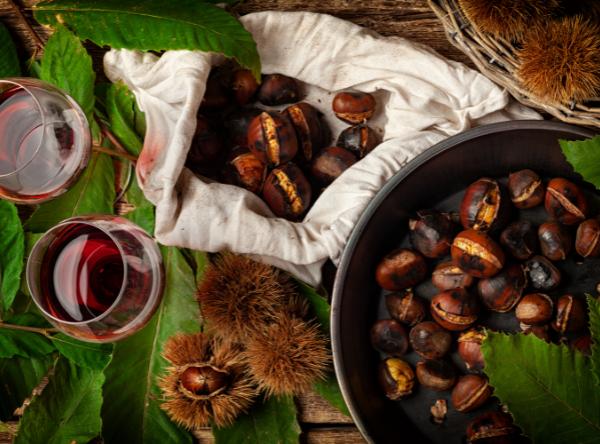 Il pomeriggio li portò nella Foresta di Camaldoli. Guanti, cestino e passo leggero: raccolsero castagne lucide, rispettando sentieri e tempi del bosco. Al rientro, padella forata sul fornello esterno, incisione a croce e via a fuoco vivo, scuotendo come un metronomo allegro. Un canovaccio appena umido aiutò la sbucciatura. Il cielo si fece ambra, le dita si scaldarono e un calice di vino chiuse la scena con semplicità e sorriso.